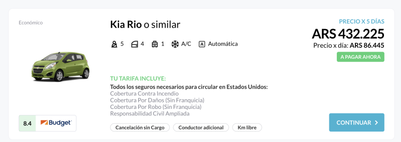 También en bookingcars un mismo auto puede tener diferentes valores con la misma rentadora, pero ahí es donde tienen que ver si incluye el conductor adicional, un tanque de combustible y otros… que detallo más abajo