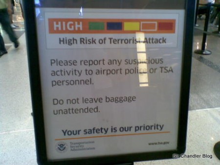 Ese es el código de riesgo actual en los Estados Unidos de ataque terrorista… así te lo informan en los aeropuertos.