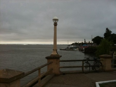 El puente que une a Corrientes y Resistencia, con «bancos-reposeras» de cemento desde donde se escribió este post
