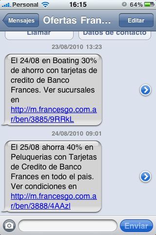 Pero hago este post, porque nobleza obliga, es muy piola el sistema de Frances Go, donde te avisan promos especiales, un día antes de que ocurran.