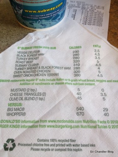 Pero en el caso de Subway además te dejan bien en claro en la servilleta misma lo que tienen sus productos… y los de la competencia (con fuente de info y todo)