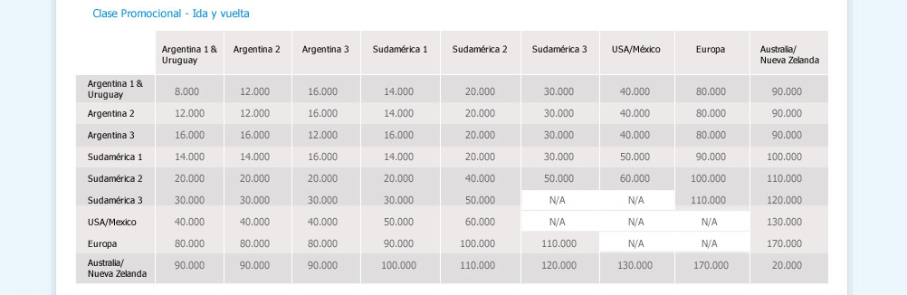 La lógica indica que Aerolíneas Argentinas y LAN darán la misma cantidad de millas o su equivalente en Kilómetros (LAN) para los mismos destinos.