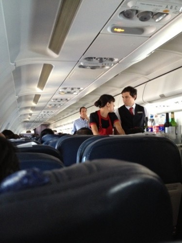 De a poco el clima en el avión fue recuperando la calma. El baño volvió a tener fila, los otros 3 tripulantes seguían con el servicio y moviéndose mas rápido por la falta de la azafata principal, que seguía atenta al pasajero.