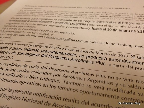 Esta semana el Banco Galicia mandó una carta a los clientes que estaban en Aerolíneas Plus con un cambio en lo que ya se había anunciado.