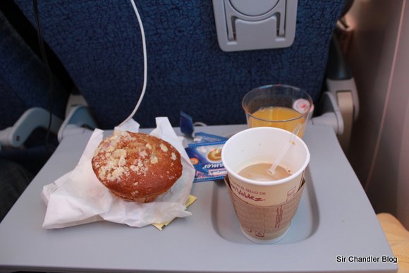 En el medio del vuelo pasaron con un muffin, que si bien se lo ve «pobre» para un vuelo, llenaba