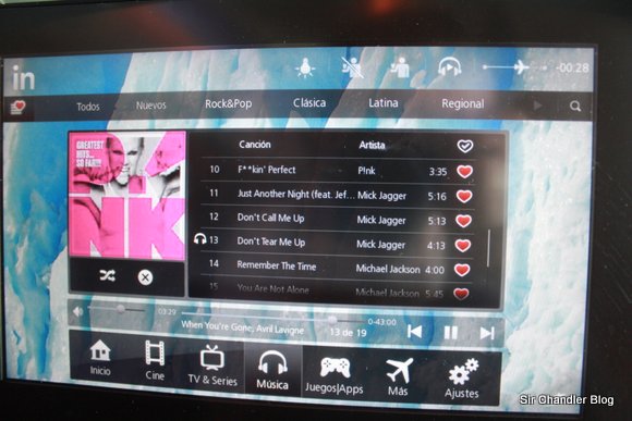 También hay que hacer un ajuste en el programa de entretenimiento, porque acá sonaba el tema de Mick Jagger, mostrando la foto de otro disco (Pink en este caso) y donde abajo mostraba que sonaba un tema de Avril Lavigne.