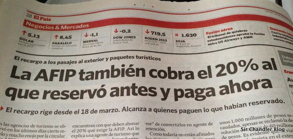 Hay una cosa que no entiendo de la nota que salio en iprofesional (de Infobae). Te copio el link: http://www.iprofesional.com/notas/157544-Agencias-de-turismo-cobran-el-recargo-del-20-a-los-que-pagaron-antes-y-viajan-ahora)