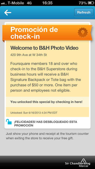Cuando me loguee en Foursquare, donde de paso vi que «muchos amigos» habían estado ahí, me saltó una promo donde me regalaban una mochilita con mi compra.