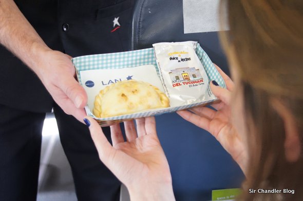 De la misma forma, durante los vuelos domésticos que despegaron en torno al mediodía se sorprendió a los pasajeros con un servicio caliente que incluyó irresistibles empanadas de carne y como postre una colación, típico dulce regional tucumano; todo ello acompañado con una copa de malbec. Asimismo, la presentación del servicio tuvo un look bien patrio, con simpáticas canastitas cubiertas con una servilleta celeste y blanca.