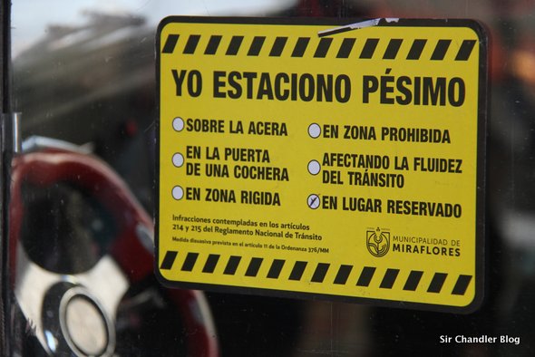 Miren este auto estacionado en un lugar reservado para personas con movilidad reducida en la zona de Miraflores, en la capital de Perú