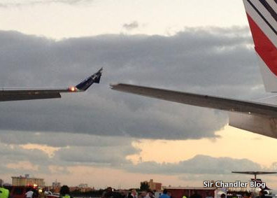 Yo creo que es un poco culpa de los winglets también: imagínense que es como si cada winglet hiciera las alas más gruesas en el eje vertical. Esto es: si las alas son más finas, hay menos probabilidad de que choquen dos modelos distintos de avión. Tal vez si no estuvieran los winglets se hubieran pasado a centímetros un ala encima de otra, por la diferencia de altura de los modelos. ¿Y si hubiera un «asistente de banderillero» que se fije en estos detalles durante la maniobra? Por ahí zafan.