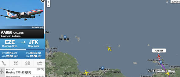 Chandler,, a esa hora yo estaba descubriendo ese sitio y haciendo lo mismo. Ahora, me pregunto, ¿es sólo una casualidad que el vuelo de AA haya salido con mayor retraso? Suele pasarle a LAN con sus vuelos hacia y desde Córdoba, «casualmente» siempre sale primero y desembarca primero AR.