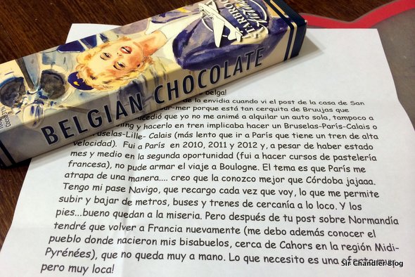 Esa cajita era de un chocolate belga (con un chocolate belga!!). Pero lo más valioso para mi fue saber que Susana me había contado que le encantaba ir a Francia y que mi post de la casa de San Martín la hace morir de envidia o todo lo de Normandía la obliga a volver a Francia…