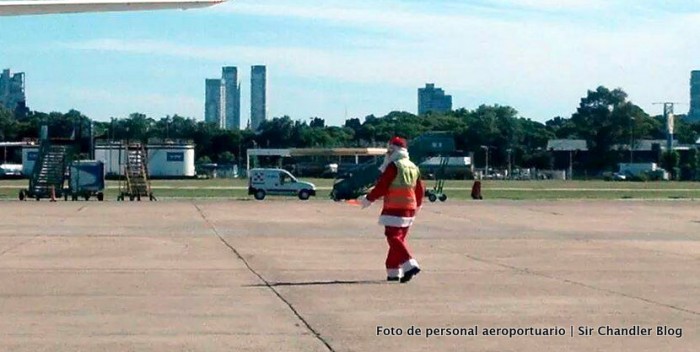 Personal aeroportuario informó a este blog que el 25 de diciembre un señalero en Aeroparque se disfrazó de Papá Noel.