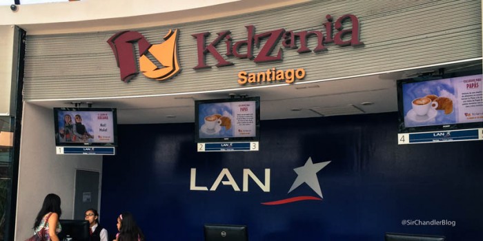 Los que puedan viajar en familia a Santiago, no dejen de conocer el lugar que lleva el entrenimiento de los chicos a otro nivel. Esta es la entrada con un boarding de LAN (en cada país tienen una aerolínea)