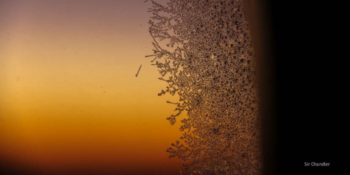 En el vuelo de regreso de Londres vi como se formó hielo en la ventanilla donde estaba. Una de esas fotos es la que ilustra este post acá arriba (de la Canon 60D), pero otra terminó en Instagram así (del Iphone 6)
