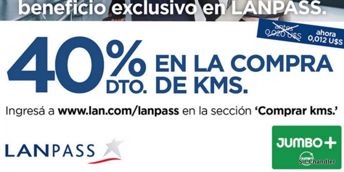 Un dato adicional.. Jumbo MAS volvió a habilitar el canje de puntos Jumbo por Kmts Lanpass para valores «alcanzables» (estaba, pero solo para valores imposibles que requerian mas de 1 millon de puntos JumboMas) – Igual sigue siendo bastante alto: Con 350k (350 mil) puntos JM cambian por 5 kmts Lanpass y por 884k (884 mil) puntos cambian por 15kmts Lanpass. Si consideramos que cada Punto JM (JumboMas) son $AR 7, quiere decir que por cada $AR 2,450,000 que gasten en Jumbo van a poder canjear por 5kmts Lanpass (siempre y cuando lo hagan en el plazo de dos años, no se les venzan los puntos y siga la promo a esos valores). Estarían valuando algo asi como 0,80 usd por cada kilometro lanpass ($AR 2,450,000 / 12.37 (TC Oficial+35%) = 198,060 usd, luego 198,060 usd / 5,000 kmts = 39,6 usd x kmt). Les dejo para que hagan el calculo de los 15kmts y practiquen matemáticas.. jajaj :=) Revisen si no mande fruta con la mate, pero creo q está bien. No es un valor que uno compra kmts, sino el valor que le estarían dando al kmt en su sistema. Aquí podemos decir que el sistema de puntos JumboMas es abusivo y más bien una pérdida de tiempo. Tal vez material para un blogpost protesta? :=)