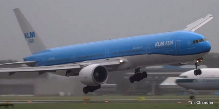 Hoy cuando llegué a Ezeiza para volar a San Pablo, vi un Boeing 777 300 de KLM con dos particularidades.