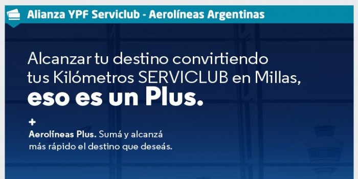 Si ya sos socio YPF SERVICLUB y sos socio Aerolíneas Plus