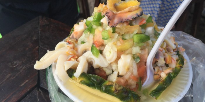 Cuando con el grupo de prensa estábamos recorriendo Nassau en Bahamas, pasamos por un puesto callejero que vendía la famosa «Conch Salad». Entonces paramos para probarla…