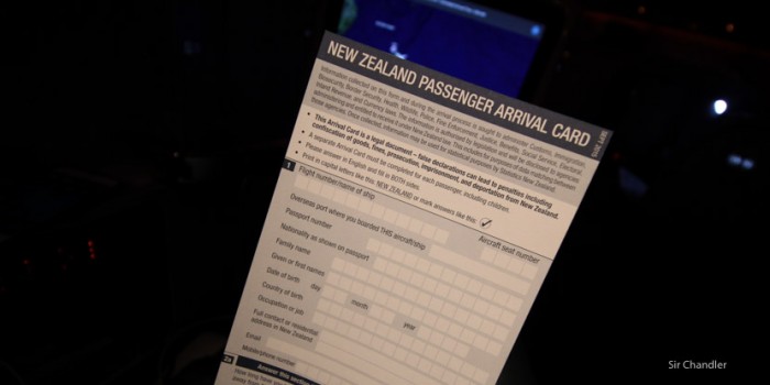 Pero vamos a lo que importa realmente. Hoy (o mañana) arribé a Auckland. Previamente en el avión completé un formulario el cual se puede ver en la foto de arriba de todo. Había varias preguntas sobre si uno tenía alimentos (evitemos comentarios sobre la letra… somos grandes, maduren :P)