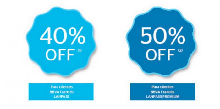 (1)EL DESCUENTO SERÁ DEL 40%, PUDIENDO COMPRAR UN KILÓMETRO A 0,012 USD EN LUGAR DE 0,02 USD (DÓLAR ESTADOUNIDENSE). ESTE DESCUENTO SE VERÁ REFLEJADO EN EL PASO 2 DE LA COMPRA EL DESCUENTO SE VERÁ REFLEJADO EN EL PASO 2 DE LA COMPRA. (2)EL DESCUENTO SERÁ DEL 50%, PUDIENDO COMPRAR UN KILÓMETRO A 0,01 USD EN LUGAR DE 0,02 USD (DÓLAR ESTADOUNIDENSE). ESTE DESCUENTO SE VERÁ REFLEJADO EN EL PASO 2 DE LA COMPRA EL DESCUENTO SE VERÁ REFLEJADO EN EL PASO 2 DE LA COMPRA. CARTERA DE CONSUMO. PROMOCIÓN VÁLIDA DEL 18/01/2016 AL 25/01/2016 INCLUSIVE. EXCLUSIVA PARA CLIENTES TITULARES DE TARJETA DE CRÉDITO BBVA FRANCÉS LANPASS (NO INCLUYE ADICIONALES) DADOS DE ALTA ANTES DEL 30/11/2015 Y EXCLUSIVAMENTE PARA LA CUENTA LANPASS ASOCIADA AL TITULAR. PROMOCIÓN EXCLUSIVA PARA RESIDENTES EN ARGENTINA. LA COMPRA DE KMS. LANPASS NO ES GARANTÍA DE LA DISPONIBILIDAD DE ALGÚN PREMIO LANPASS. PROMOCIÓN VÁLIDA ÚNICAMENTE PARA SOCIOS REGISTRADOS EN EL PROGRAMA POR UN PERIODO IGUAL O SUPERIOR A TRES MESES, O CONTAR CON UN SALDO DE KMS IGUAL O SUPERIOR A 1.600 KMS. LANPASS EN SUS CUENTAS. EL NÚMERO DE KILÓMETROS QUE COMPRE NO PUEDE SER INFERIOR A 1.500 KMS. LA CANTIDAD MÁXIMA DE KMS QUE SE PUEDE COMPRAR CONFORME REGLAMENTO LANPASS, ES DE 200.000 POR AÑO. EL PAGO DEBE REALIZARSE CON TARJETA DE CRÉDITO BBVA FRANCÉS LANPASS. LA COMPRA DE KMS. LANPASS SE REALIZA VÍA INTERNET EN EL EXTERIOR. POR TAL MOTIVO, EL CARGO A ABONAR SERÁ EN DÓLARES ESTADOUNIDENSES Y LA OPERACIÓN ESTARÁ SUJETA A LAS CONDICIONES VIGENTES EN ARGENTINA PARA LOS GASTOS CON TARJETA DE CRÉDITO EN MONEDA EXTRANJERA. LOS KILÓMETROS COMPRADOS NO SERÁN CONSIDERADOS PARA CLASIFICAR EN LAS DISTINTAS CATEGORÍAS DE SOCIOS LANPASS. NO SE PERMITE DEVOLUCIÓN DE LOS KILÓMETROS COMPRADOS, NI APLICA LA GARANTÍA DE 24 HORAS. LA COMPRA DE KILÓMETROS ESTÁ SÓLO DISPONIBLE EN LAN.COM. SÓLO SE PERMITE UNA COMPRA DE KMS. LANPASS AL DÍA. LOS KMS. COMPRADOS TIENEN VIGENCIA DE 3 AÑOS CALENDARIO A PARTIR DE LA FECHA DE LA COMPRA. POR EJEMPLO, SI SU COMPRA DE KMS. FUE REALIZADA EL 23 DE MAYO DE 2015, ENTONCES SU VIGENCIA SERÁ HASTA EL 31 DE DICIEMBRE DE 2017. LA COMPRA DE KILÓMETROS NO EXTIENDE EL VENCIMIENTO DE KILÓMETROS ACUMULADOS ANTERIORMENTE. ASEGÚRESE DE TENER REGISTRADO CORRECTAMENTE SU CORREO ELECTRÓNICO ANTES DE CONCRETAR LA COMPRA DE KMS. EL PROGRAMA NO ES ACUMULABLE CON OTROS PROGRAMAS DE SUMA Y ACUMULACIÓN DE PUNTOS. LOS TÉRMINOS Y CONDICIONES DEL PROGRAMA LANPASS SON DE EXCLUSIVA PROPIEDAD DE LAN, LOS MISMOS SE ENCUENTRAN DISPONIBLES EN SU SITIO WEB WWW.LAN.COM, LOS CUÁLES PODRÁN SER MODIFICADOS. LAN ES RESPONSABLE POR LA ADMINISTRACIÓN DEL PROGRAMA.