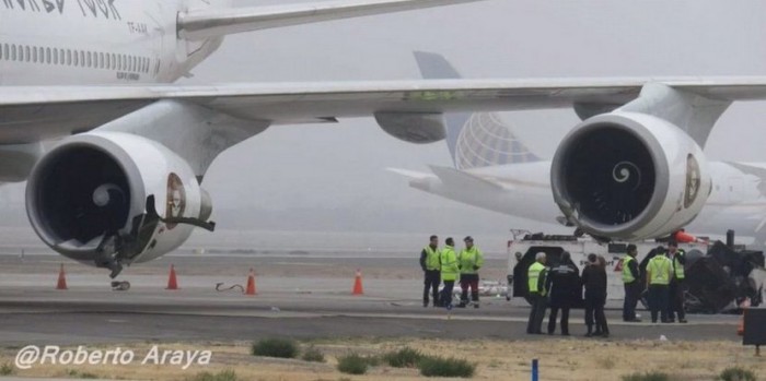 Oh, qué mal che! En algunas noticias dicen que fue que se desprendió el remolque, una situación evitable http://www.t13.cl/noticia/nacional/avion-iron-maiden-sufre-accidente-losa-del-aeropuerto-pudahuel