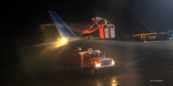 Pero paso a lo importante. Ahí se pusieron a descongelar las alas del avión, como se hace siempre que hay temperaturas tan bajas. Nunca me había pasado… maravilloso