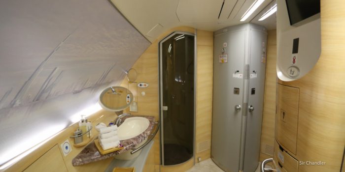 Pero para poder largar algo rápido quiero mostrar la ducha de los Airbus 380 que tiene Emirates… si si, aquel que viaje en Primera (que no es busines…) puede pegarse una ducha mientras el avión está en el aire…