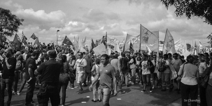 - Y llegaron los de los micros… subió uno IMPRESENTABLE de FLECHABUS que empezó a subir el tono y estaba como loco. En un momento empezó a maldecir al gobierno nacional y comenzaron los aplausos de la parte gremial, pero al toque mandó un «porque lo que sufrimos nosotros en los 12 años de dictadura que terminaron»…. y los aplausos cesaron. Si ese tipo entraba con molotovs moríamos todos… y ahí ya me fui porque seguía Chevallier y no se cuales más