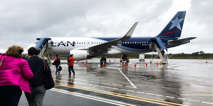 Chiloé es una isla de la Patagonia chilena y tiene vuelos hace pocos años, creo que tres para ser más precisos. La que comenzó a volar fue LATAM, primero con escala en Puerto Montt que está a pocos kilómetros (pero dos horas de auto + balsa). Y ahora tiene vuelos directos a Santiago de Chile