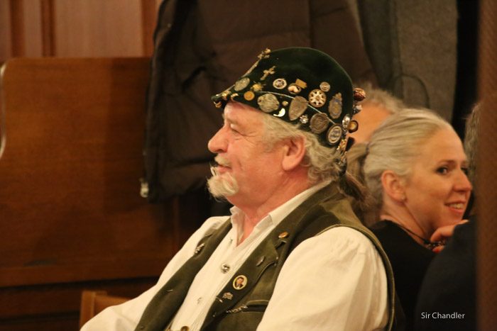 Y al bajar vi que había reunión de amigos, con sus vestimentas clásicas