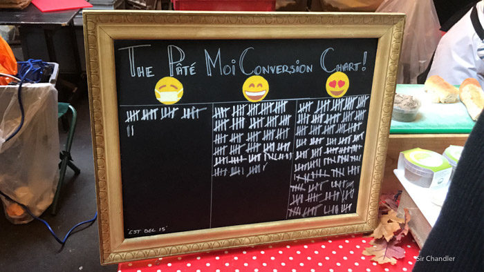 En muchos lugares había cosas para degustar y los «locatarios» insistían para que uno probara. Este tenía una supuesta pizarra de satisfacción 😉