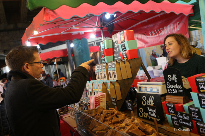Y uno puede ir a comer o comprar algo y llevarse. Pero lo que yo disfruto en estos lugares es ver lo que hace todo el mundo, porque si bien muchos son turistas… reitero, es Londres.. hay muchos locales vendiendo cosas