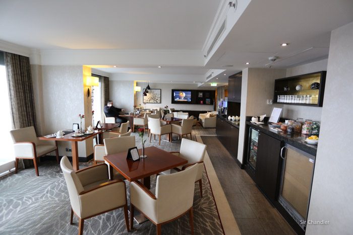 Pero además nosotros estábamos en el piso ejecutivo, al igual que sucedió en el de Naples. Y dentro de ese piso en los Hilton hay un lugar para desayunar, comer algo, servirse un te o café… y siempre algo para comer. Eso está incluído para quienes paguen la tarifa del nivel ejecutivo.