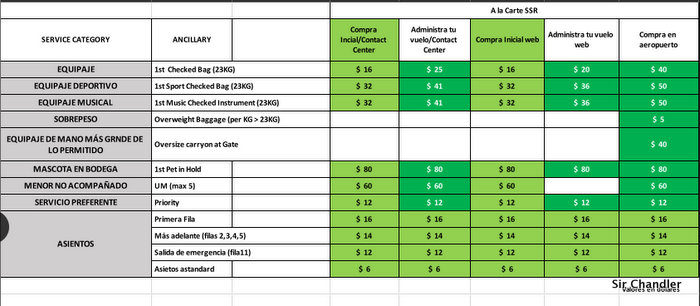 A partir de este jueves 16, la compañía comenzará a cobrar por las maletas en bodega y asientos. También simplificó el cobro por equipaje deportivo, instrumentos musicales, exceso de equipaje y mascotas en cabina, entre otros.