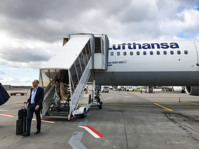 Llegamos a Frankfurt donde tuvimos una escalera con techo. Parece que en la Argentina los techos no tienen permiso de importación (???)