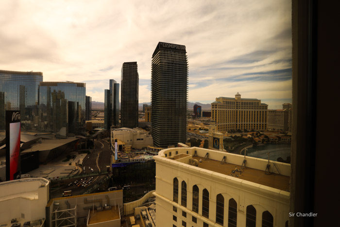 Y la vista desde la ventana. El de la derecha es el Bellagio, justo en el medio el Cosmopolitan