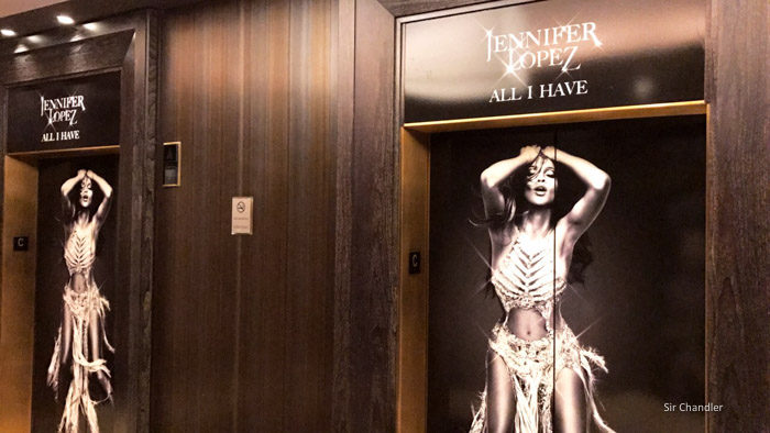 Las puertas del ascensor promocionaban el futuro show de JLO… del otro lado y en el estacionamiento estaba la imagen de Britney que tiene un show ahora