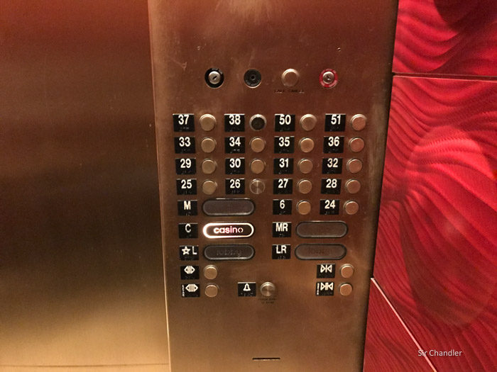 Tienen dos grupos de ascensores, los separan según al piso al que vás. Este llegaba desde el 24 al 51. Y está bien claro el botón del casino, que es justo arriba del nivel de la calle