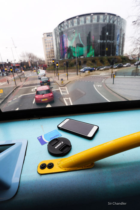 Pasamos por el Imax con su particular edificio. Ahí se ven mi Oyster (la SUBE original), el iphone y la tapa de la cámara que sacó la foto 😉