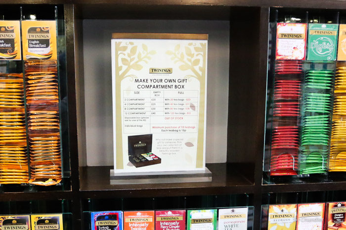 Mi mujer, fanática del té, me hizo caminar a Twinings desde nuestro hotel en Mayfair… Y cuando llegamos estaba cerrado por un corte de luz! Al otro día volvimos, es realmente muy chiquito pero bien surtido (aunque justo el blend que mi mujer quería no estaba, era un blend realizado por una ocasión especial y no se había vuelto a repetir). Los precios, en ese momento, eran normales y conseguías variedades que no estaban en el super; además de toda la parafernalia tesística que quieras (infusores, teteras, tazas, etc., todas con logo). Un plus de la visita fue aprender que toda la vida habíamos pronunciado mal el nombre de la marca (!)