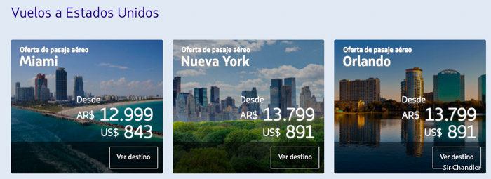 Lo habitual para los argentinos en Estados Unidos, con Miami a 12.999,. Nueva York, Los ángeles y Orlando a 13.799. Lo más barato de USA es Washington a 12.799