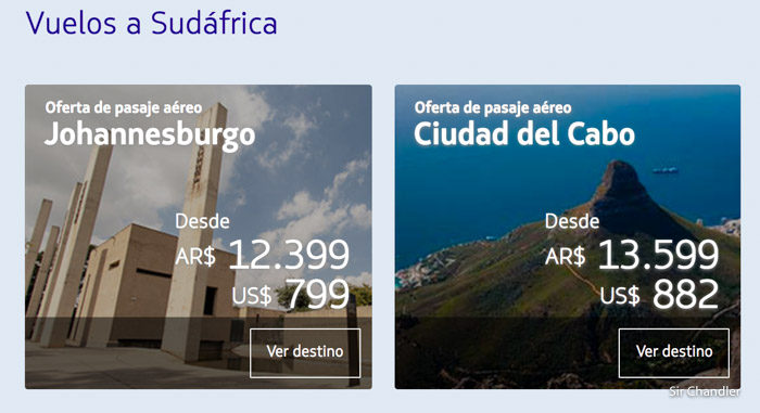 Otros destacados son los de Sudáfrica, donde me parece bueno que sumen a Ciudad del cabo, por lo que ahí hay una extensión del viaje con alguna aerolínea local en código compartido seguro.