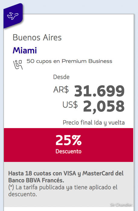 Importante es que son 18 cuotas sin interés con el BBVA Francés en todos los vuelos. Eso es lo que marca la diferencia también y es un % de ahorro importante.