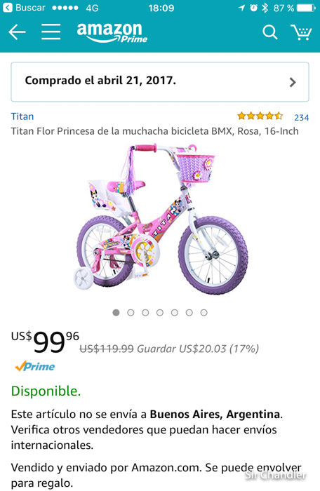 Las bicis que traje son estas. Y muestro las capturas porque es lo que hice por si preguntaban en aduana los costos (no llegaron con la factura y no las imprimí desde el sitio). Clickeando en las imágenes llegan a la ficha en Amazon