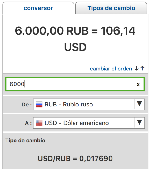 Entonces eran 300 rublos, que según el coeficiente de arriba termina siendo USD 5,30