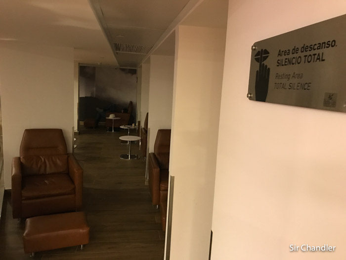Y un área de descanso total, que simplemente tiene asientos con apoya pies, un vidrio que separa del sector general y luces apagadas