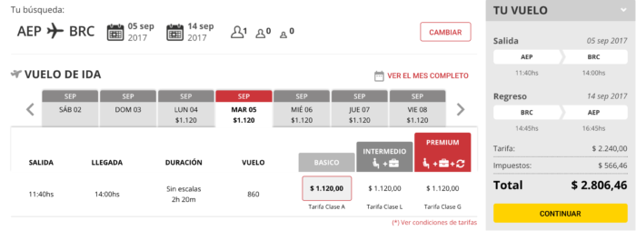 Pero lo particular del caso es que ninguna tarifa puede ser menor al piso tarifario fijado por ley, por lo que en una podrías no tener equipaje y en otra si… obviamente si encontrás ese piso tarifario.