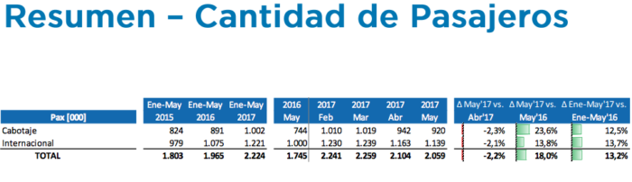 Se ve un crecimiento mayormente en cabotaje del 19,2% con respecto al año pasado. Internacional solo aumentó un 3,7%